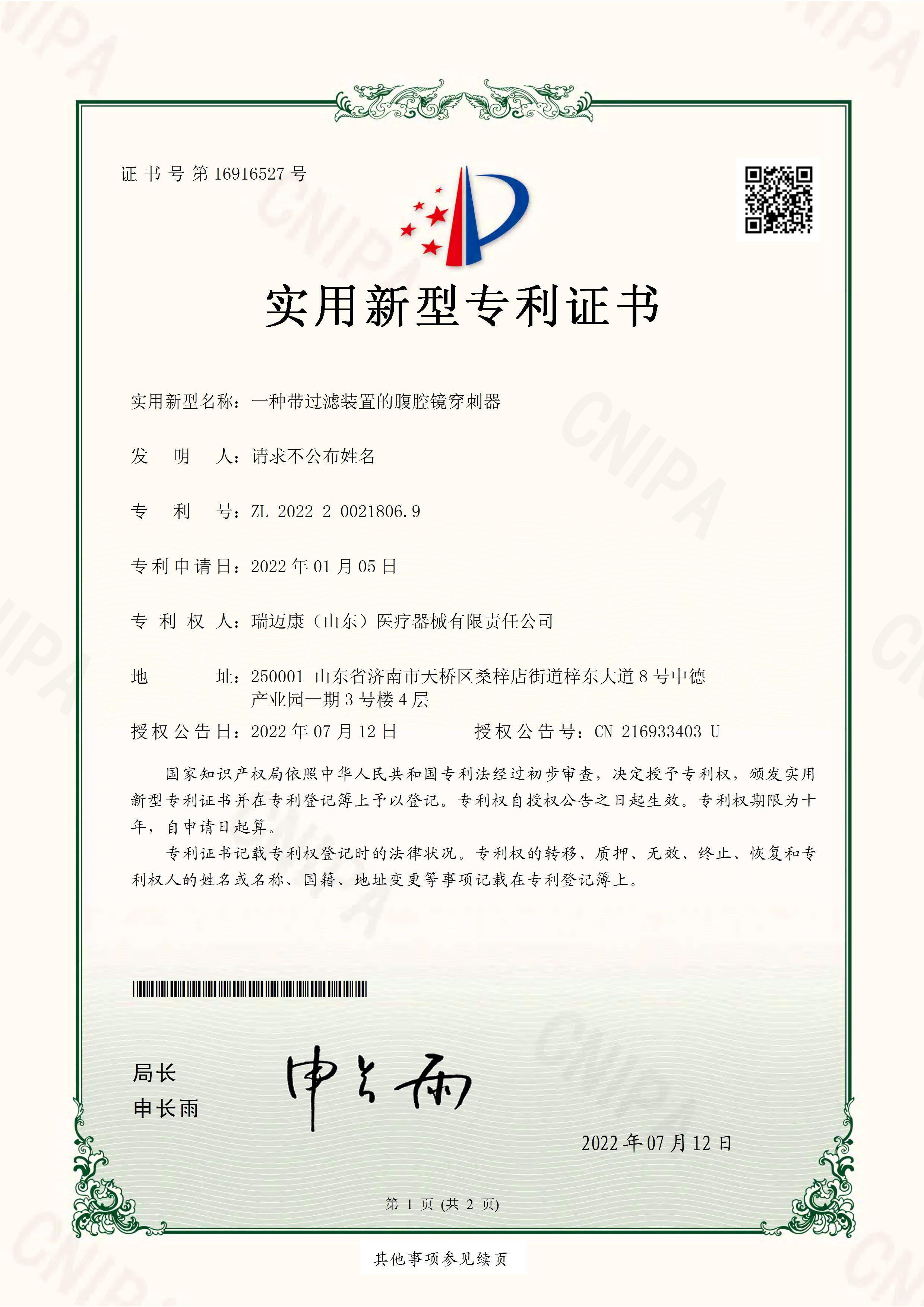 瑞迈康(山东)医疗器械有限责任公司成立于2019年,是一家集研发、生产、经营于一体的高新技术企业,坐落于素有“四面荷花三面柳,一城山色半城湖” 的泉城济南。目前已拥有多项发明和实用新型专利,另有多项专利在申请中。